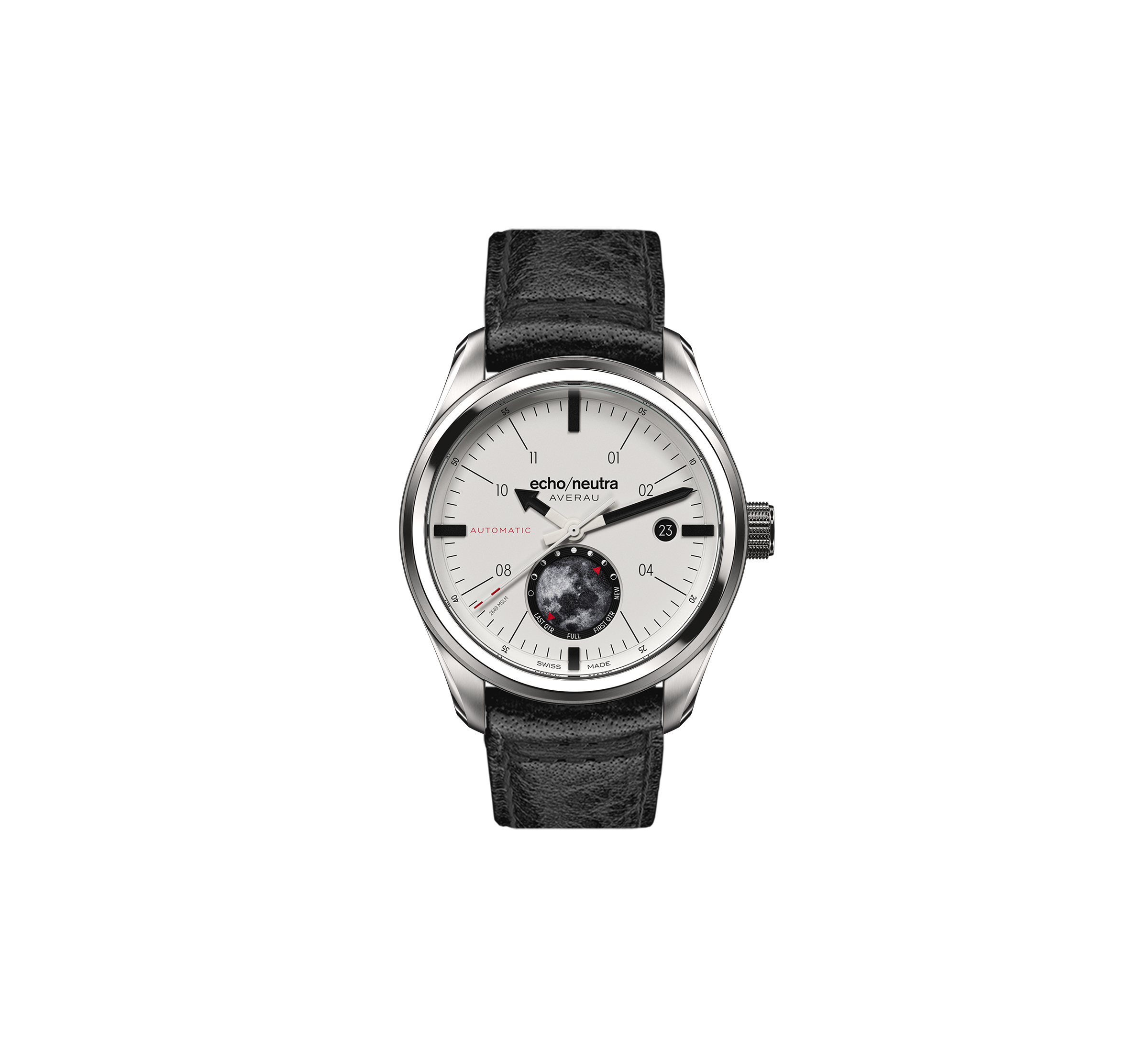 Die neue Kollektion AVERAU 39 Moon Phase ist unsere moderne Neuinterpretation einer klassischen Uhrenkomplikation. Als eine der ältesten bekannten Komplikationen zeigt die Mondphasenanzeige den von der Sonne beschienenen Teil des Mondes, wie er von der Erde aus gesehen wird.